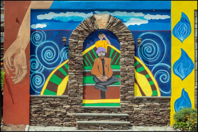 Peekskill has quite a lot of murals. In this particular location (Central Ave) there were several more. I only photographed these two. I’ve not yet been able to find any information about them (e.g. who created them, what they represent, why they’re there etc.), but while looking for such information I came across a person who described such murals as “putting lipstick on a pig”.