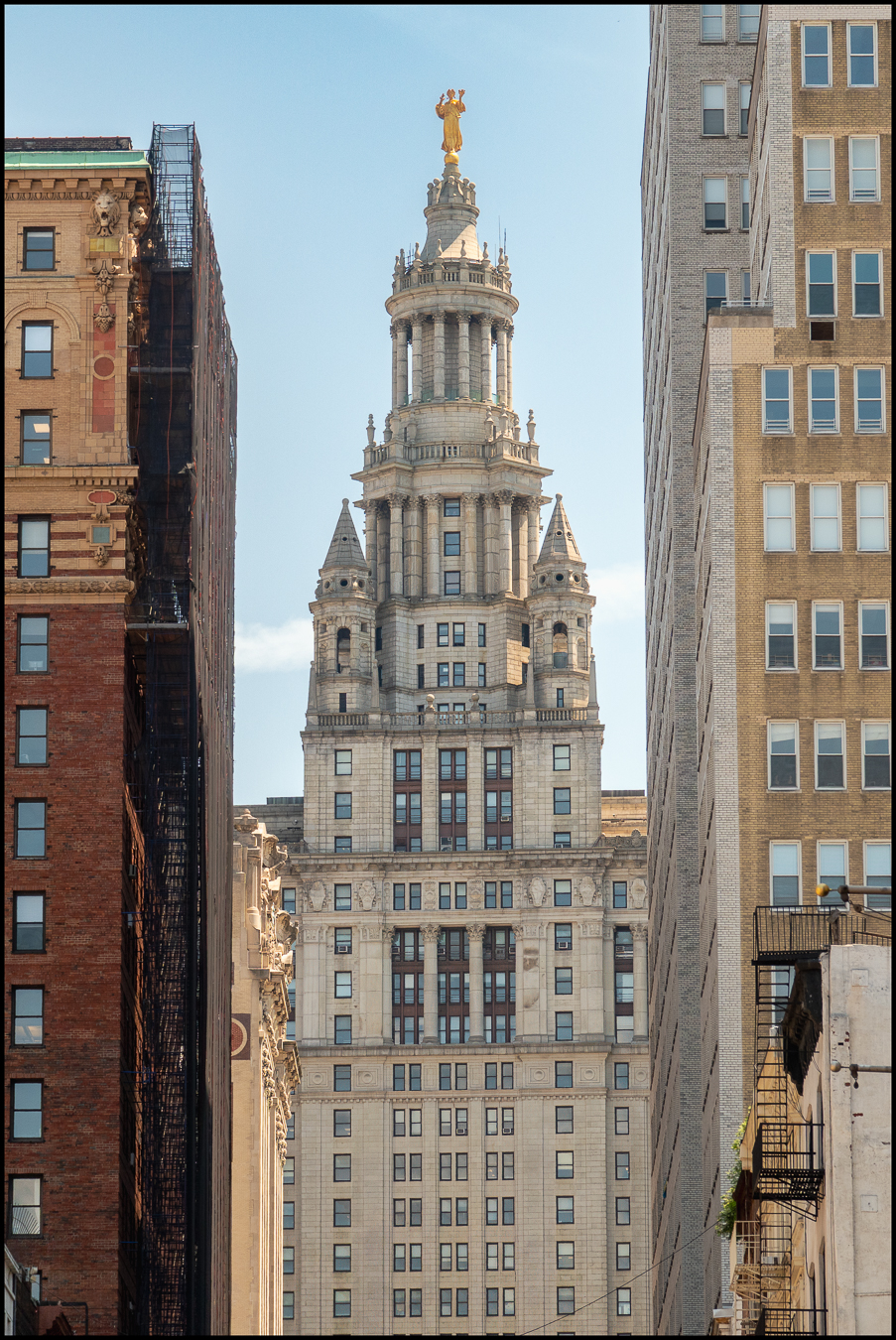 The David N. Dinkins Municipal Building (originally the Municipal Building and later known as the Manhattan Municipal Building) is a 40-story, 580-foot (180 m) building at 1 Centre Street, east of Chambers Street, in the Civic Center neighborhood of Manhattan in New York City. The structure was built to accommodate increased governmental space demands after the 1898 consolidation of the city’s five boroughs. Construction began in 1909 and continued through 1914 at a total cost of $12 million (equivalent to $269,713,000 in 2023).