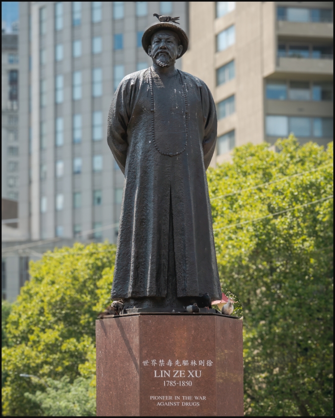 Lin Zexu (30 August 1785 – 22 November 1850), courtesy name Yuanfu, was a Chinese political philosopher and politician. He was a head of state (Viceroy), Governor General, scholar-official, and under the Daoguang Emperor of the Qing dynasty best known for his role in the First Opium War of 1839–42. He was from Fuzhou, Fujian Province. Lin’s forceful opposition to the opium trade was a primary catalyst for the First Opium War. He is praised for his constant position on the “moral high ground” in his fight, but he is also blamed for a rigid approach which failed to account for the domestic and international complexities of the problem. The emperor endorsed the hardline policies and anti-drugs movement advocated by Lin, but placed all responsibility for the resulting disastrous Opium War onto Lin.