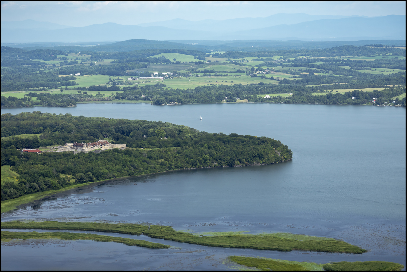 In an earlier post I urged readers to look for a flag on a nearby hill. That hill is actually Mount Defiance. This view of Fort Ticonderoga was taken from there.