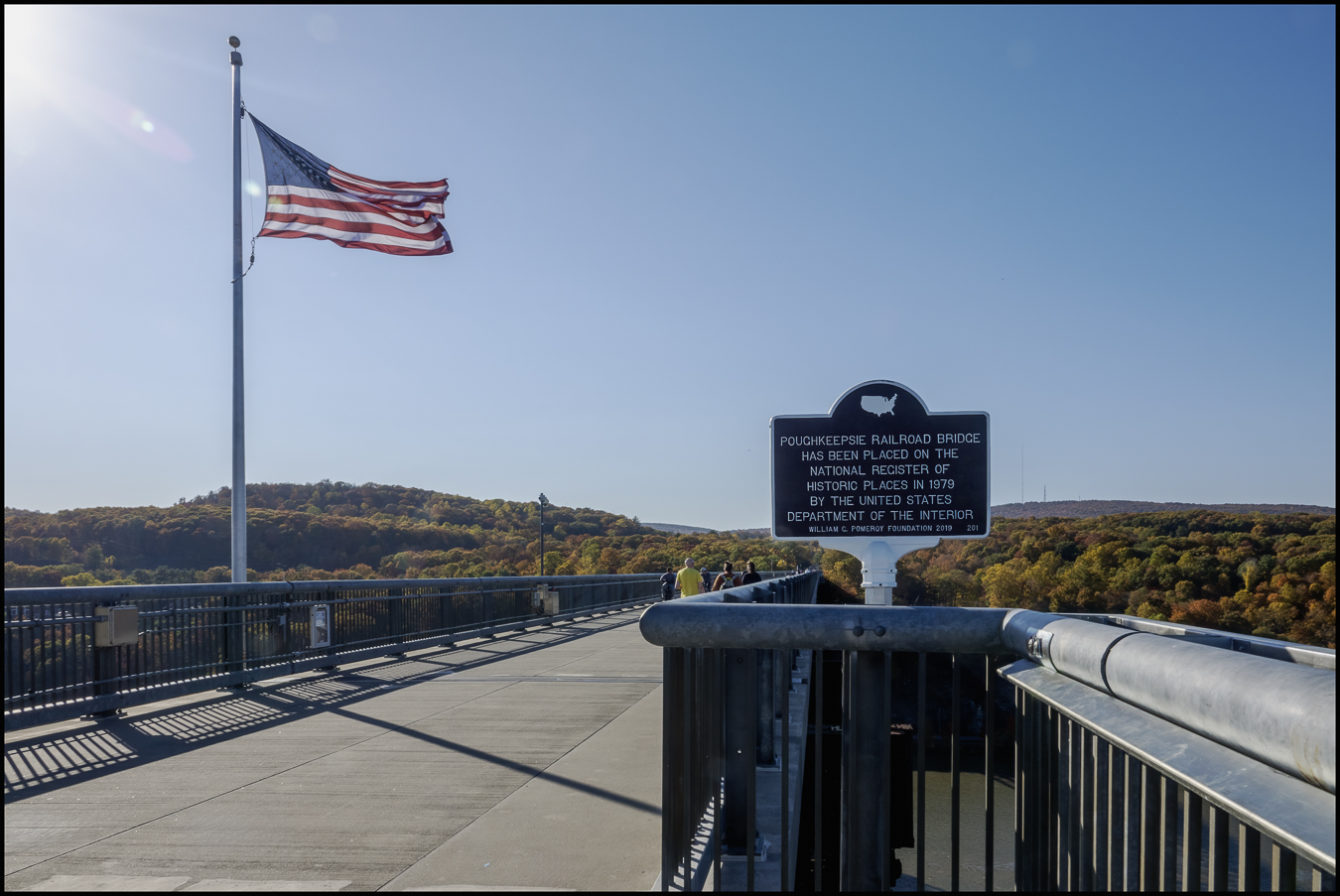 A while back I went for a walk over the Walkway over the Hudson. It’s a steel bridge spanning the Hudson River between Poughkeepsie, New York, on the east bank and Highland, New York, on the west bank. Built as a double track railroad bridge, it was completed on January 1, 1889. A fire caused it to be taken out of service in 1974. It was reopened on October 3, 2009, as a pedestrian walkway, part of the Walkway Over the Hudson State Historic Park. It claims to the world’s longest elevated pedestrian bridge.