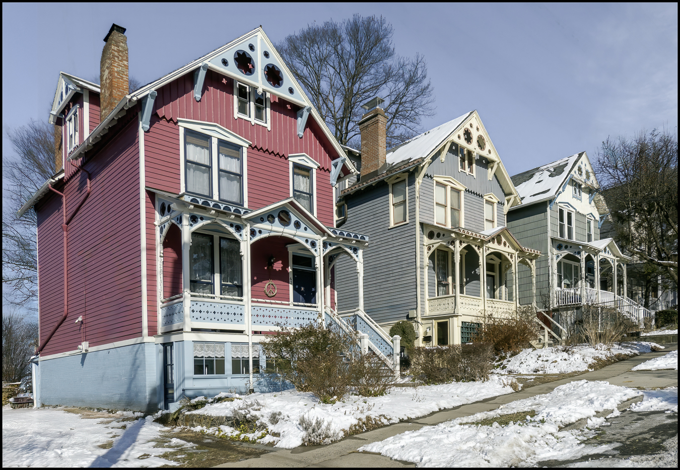 The Three Sisters are architecturally significant as examples of late 19th-Century Carpenter Gothic-style houses.