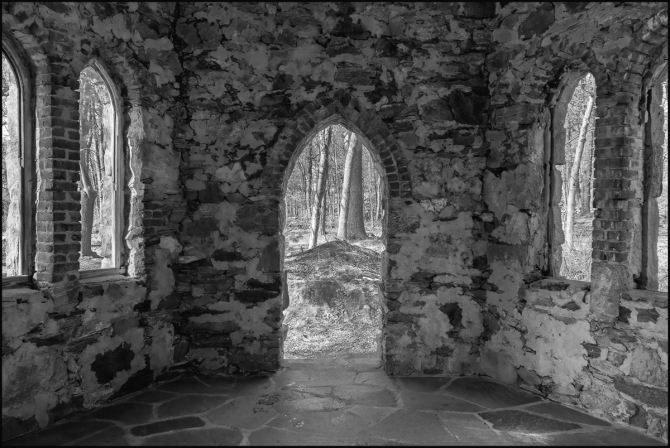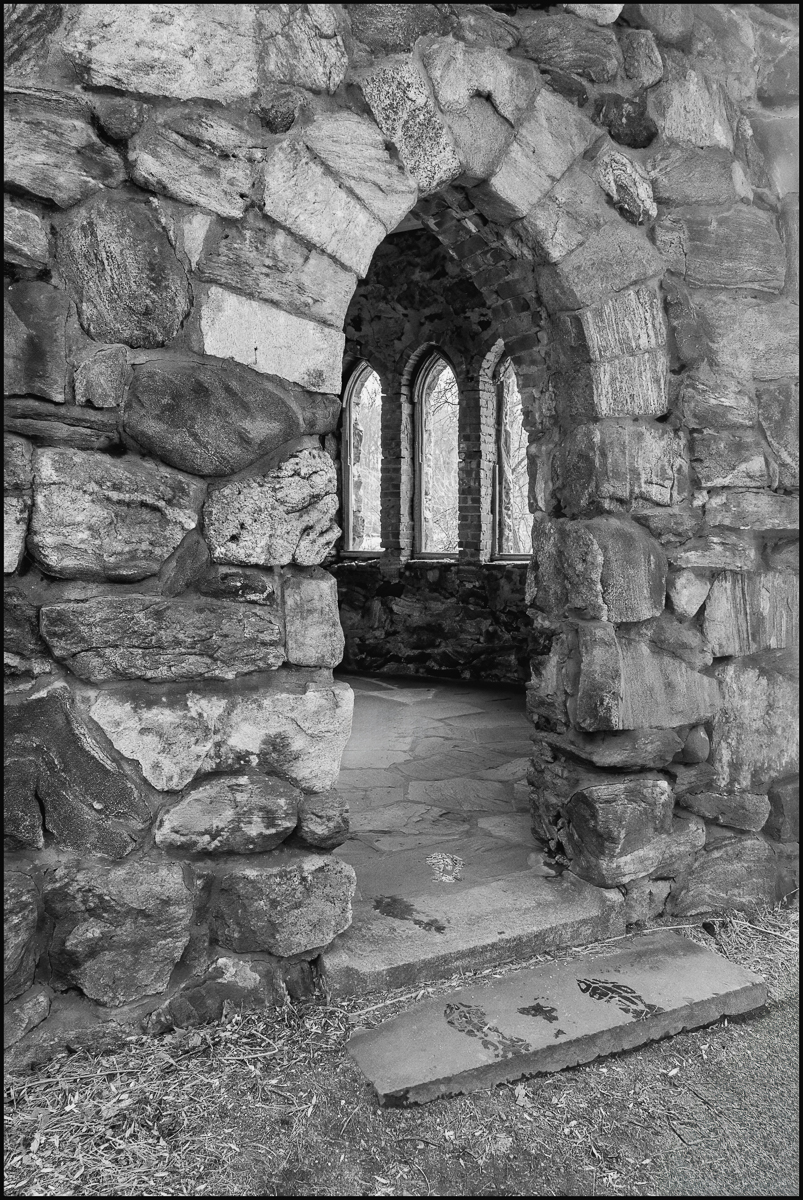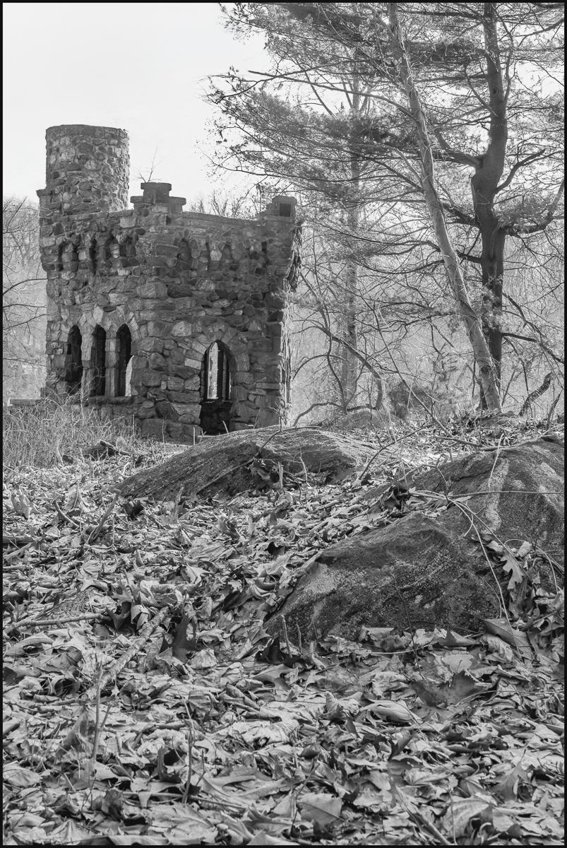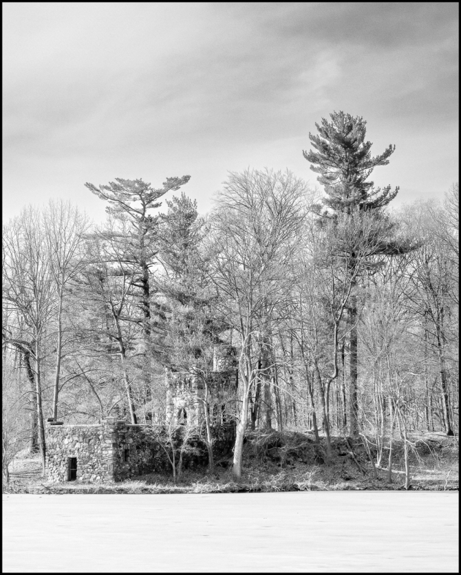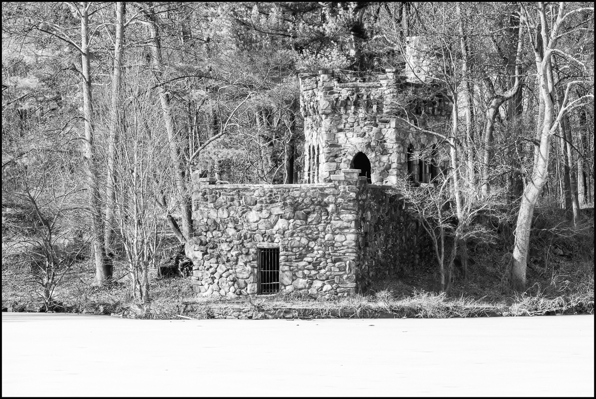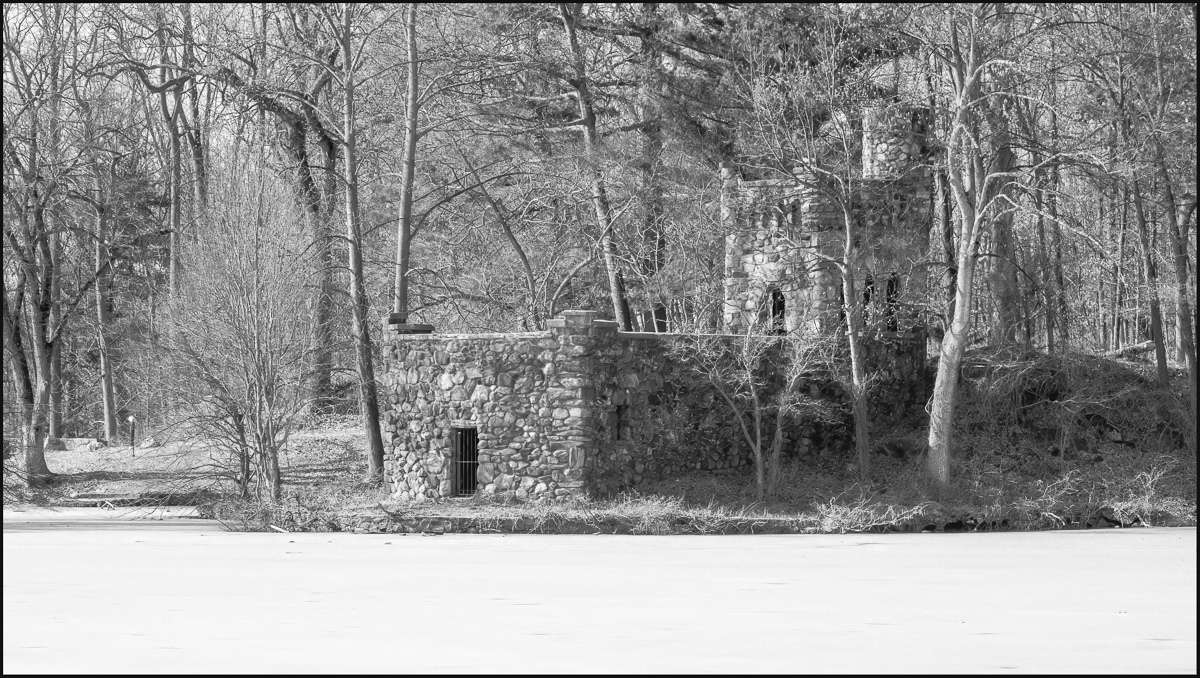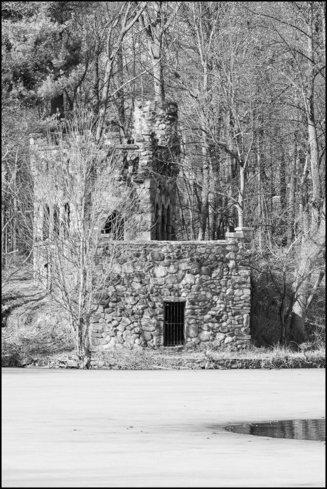 Benjamin Halsey bought Rochroane castle in 1927 and renamed it “Grey Towers.” After Halsey’s death in 1956, his widow began donating portions of the estate to the Immaculate Conception Church, ending with the mansion itself in 1976. Gutted by fire a few months later, the mansion and 38 acres were sold to a developer who, in 1980, deeded Halsey Pond and its folly, sometimes called Halsey Teahouse, to the Village of Irvington in exchange for permission to remove Rochroane/Grey Towers and subdivide the rest of the property.