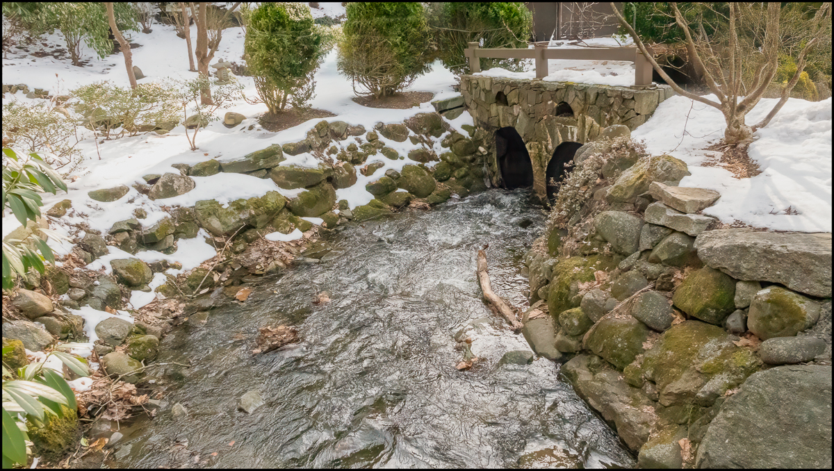 Interesting stone structures channeling Barney Brook. The picture above shows how the brook passes under the Old Croton Aqueduct.