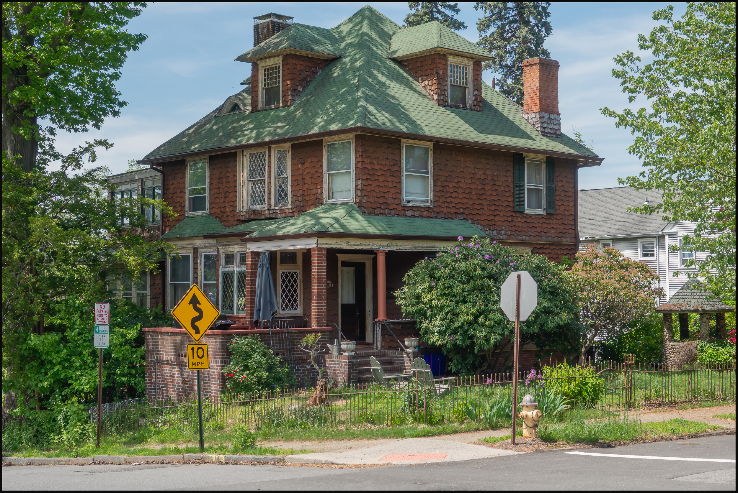 While walking back to the station from Peekskill’s Blue Mountain Reservation I spotted this interesting looking house across the road. As I looked more closely, I noticed the dog in the garden.