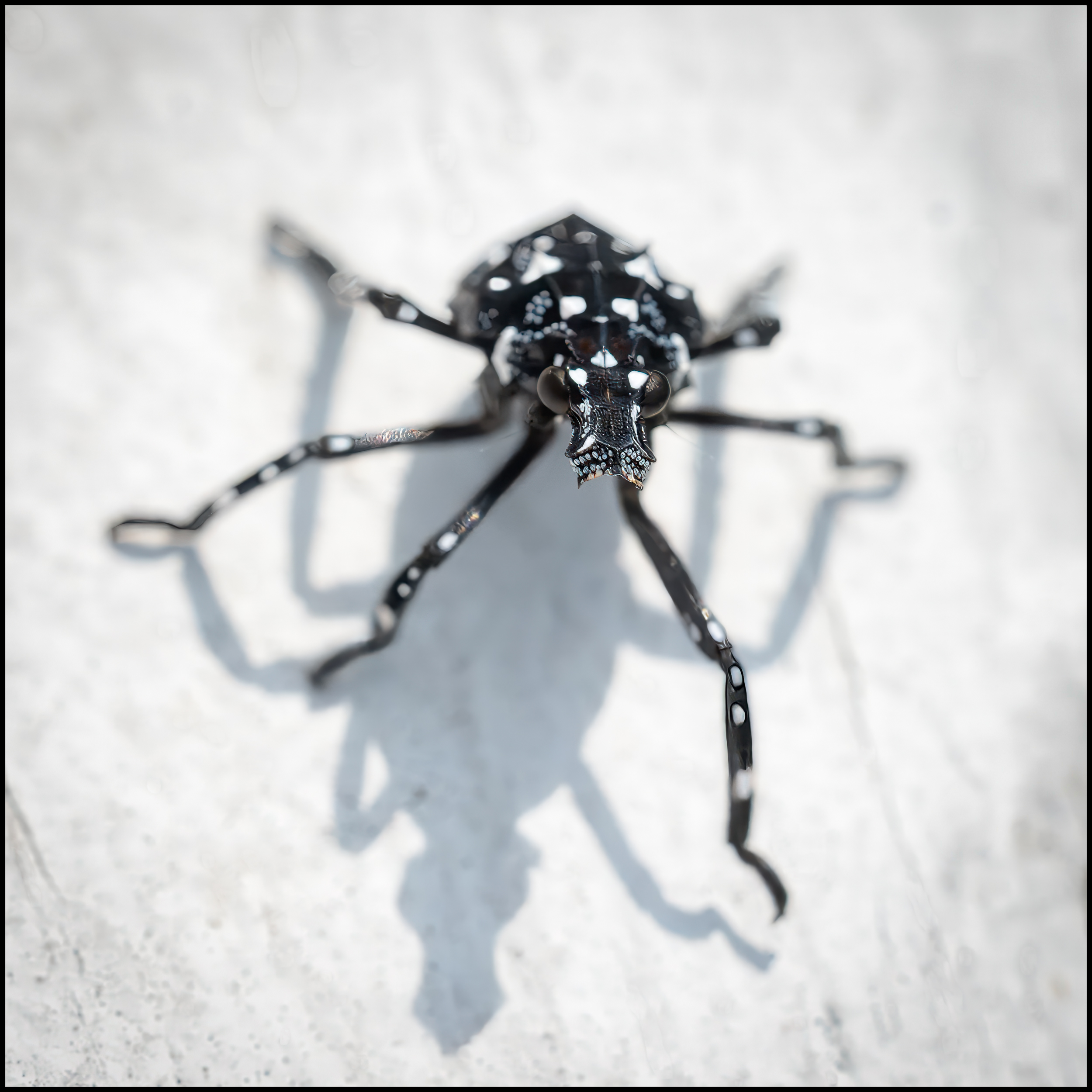 A few days ago, I was sitting on my balcony when I noticed a number of tiny spotted bugs. I found them not unattractive. Not surprisingly I wanted a picture. However, by the time I found the right camera they’d all disappeared.