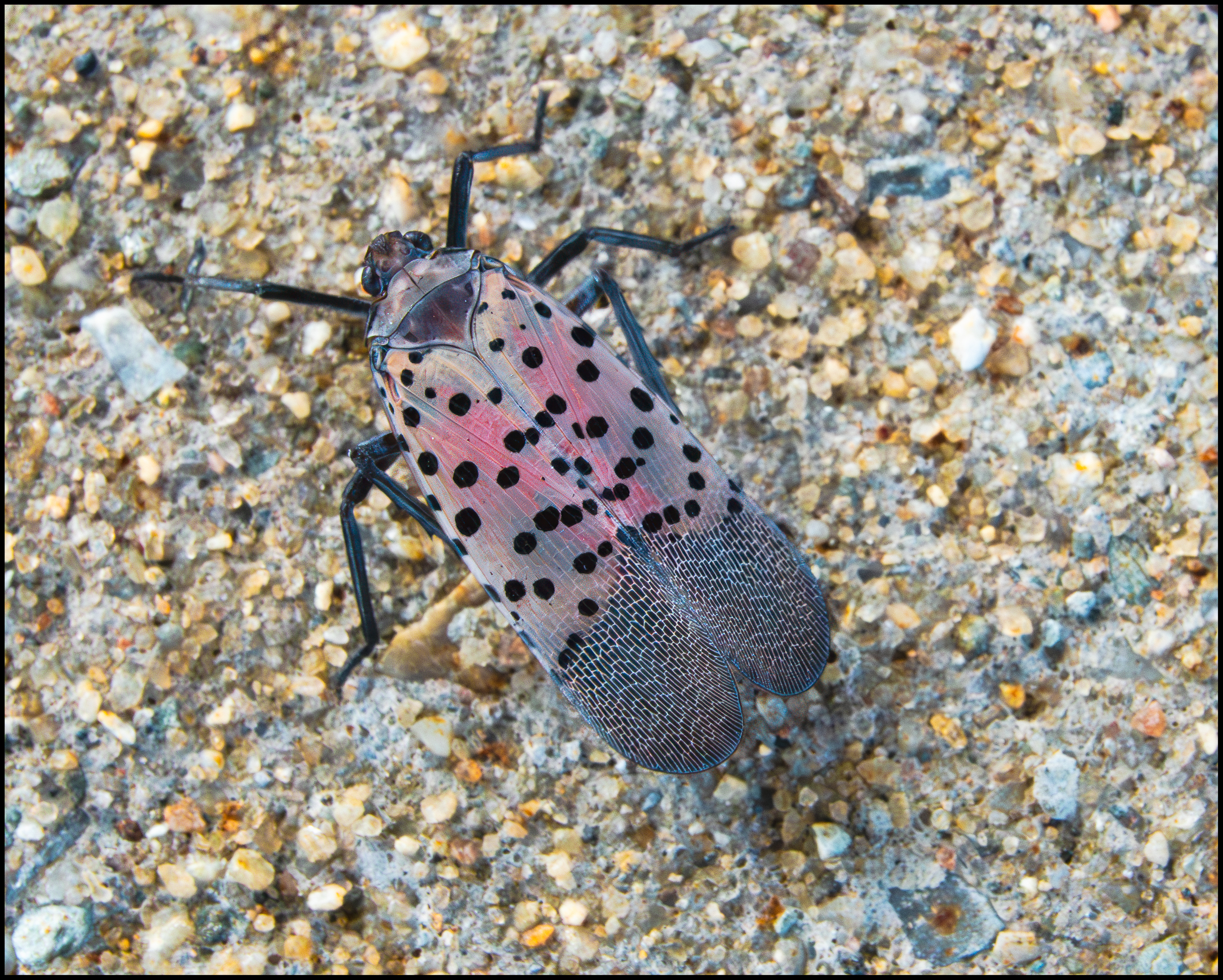 I didn’t know what it was, so I did some research. It’s actually the juvenile stage of something we’ve become familiar with the dreaded spotted lanternfly (see last picture).