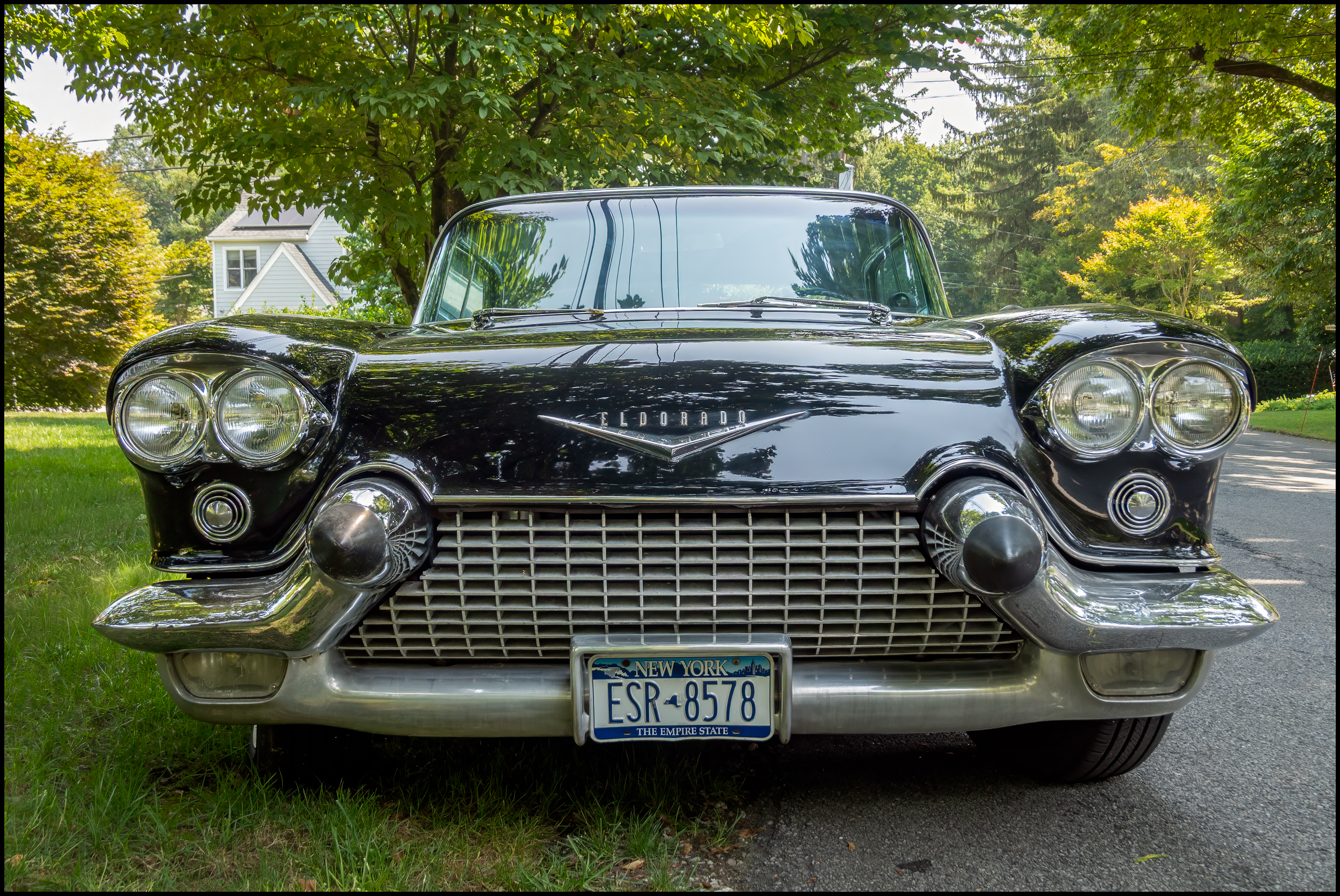 I came across this amazing car while walking in Briarcliff Manor’s “Tree Streets” the other day. I don’t know very much about cars, but after a little research I suspect it’s a 1957 Cadillac Brougham.