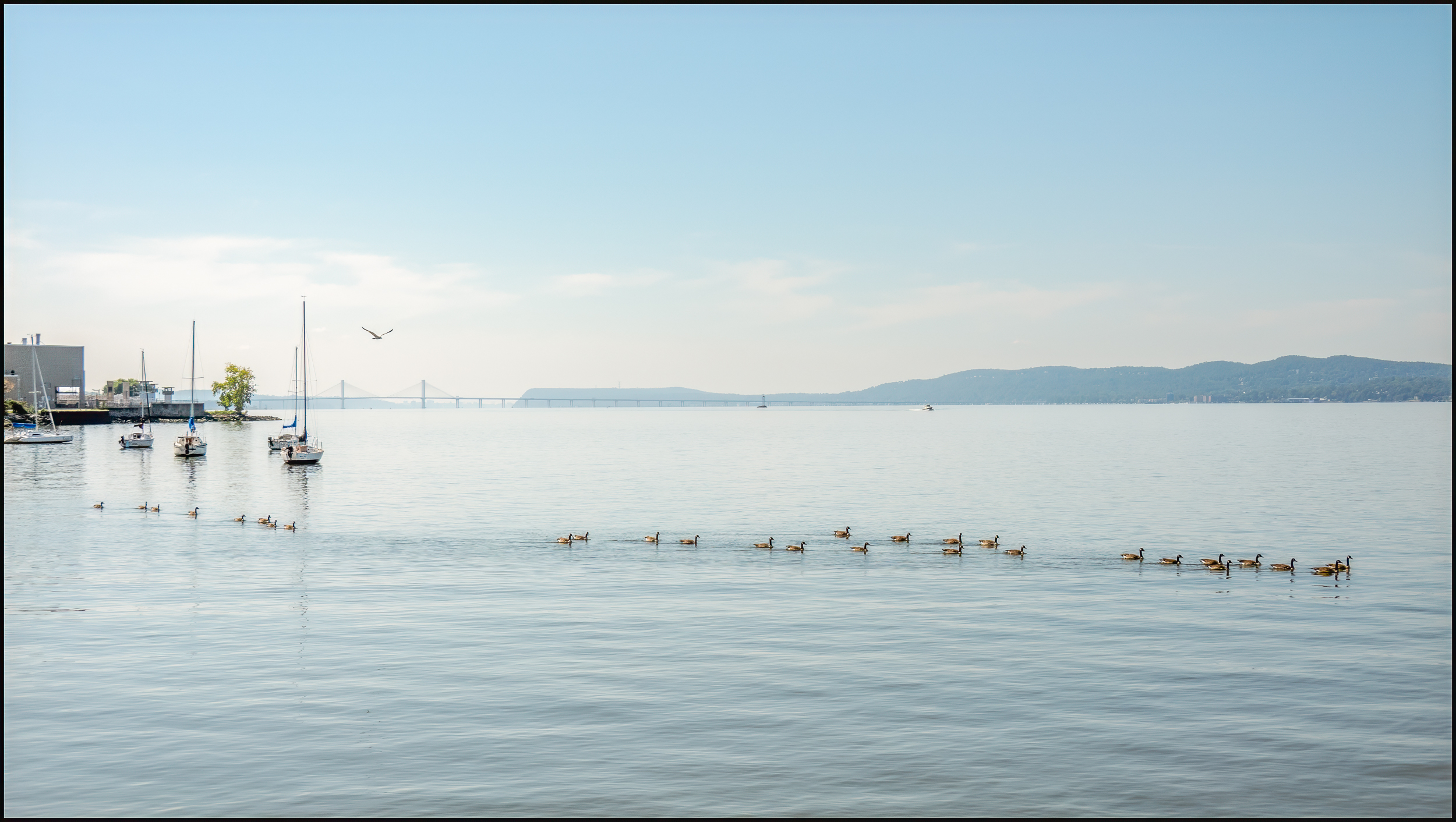 I came across this convoy of Canada Geese the other day on the Hudson River in Ossining, NY. They were heading north (maybe to some kind of goose convention?). I don’t recall ever have seen so many of them at the same time. This picture shows 29 geese, but I couldn’t fit all of them in, there were probably 10-15 more behind these.