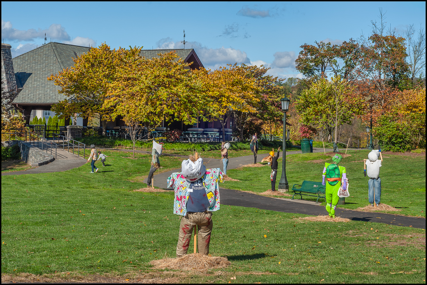 Every year our town park (Law Memorial Park) is filled with scarecrows. I believe (but don’t know for sure) that they’re part of a competition where winners get some kind of prize.