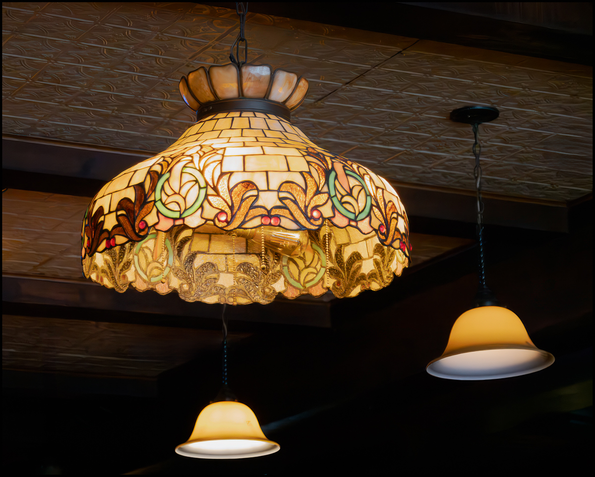 The waiting room, modeled on Grand Central Terminal,[4] is a high gallery lit during daylight by the windows and the three original chandeliers. The 14 benches within are also original finished chestnut pieces. The walls are paneled in wood to eight feet (240 cm), after which the carved stone shows all the way to the cornice. More original woodwork, the stained walnut rafters, is present in the ceiling, possibly modeled after a similar design in San Miniato al Monte, an 11th-century church in Florence, Italy.