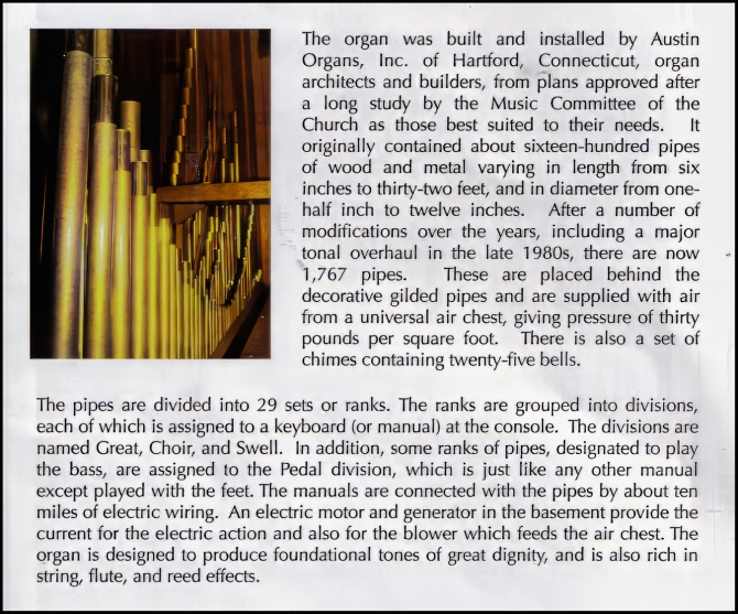 An article dated June 26, 2023, by Robert Brum, in River Journal: “Historic Ossining Church Awaits Second Act” states that a deconsecrating ceremony took place in August of 2019. The Tiffany window (titled Te Deum: Christ Enthroned), apparently was sold by the United Methodist Church’s New York Conference. It is now on display at the Gelman Stained Glass Museum in San Juan, Texas. The window is composed of 41 panels and was proclaimed as one of the most “famous windows of this country” when it was installed in 1899 in memory of longtime Ossining church member Townsend Young, according to the museum’s website.