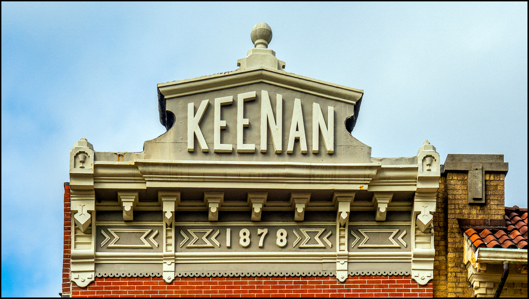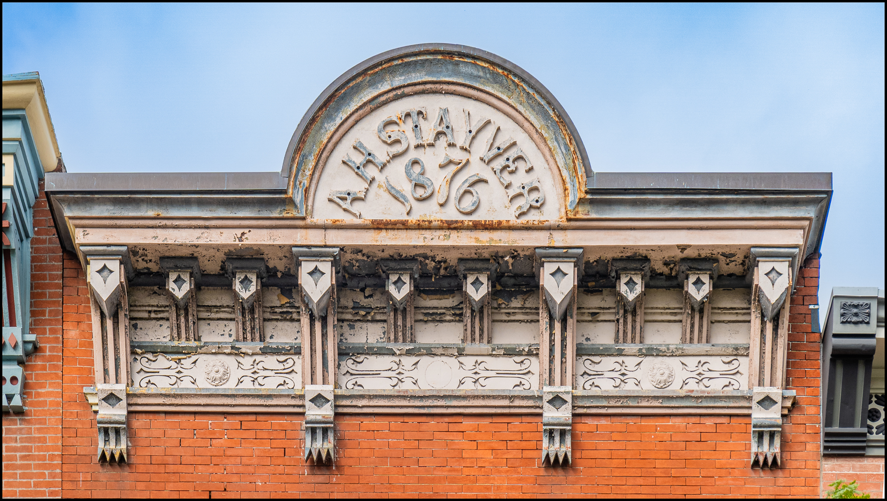 I’ve often read that most people take photographs from eye level and that this contributes to all photographs looking the same. The solution to this: take pictures from above; from below; look down; look up. This change in perspective adds variety to your photographs. In my case I do take pictures from above (when I can get high enough to make this possible). I often get down low e.g. to take pictures of small children, animals, flowers etc. I often look down, but I rarely look up. How else would I explain how, walking down Main Street, Ossining virtually every week I’ve never seen these interesting pediments (if that’s what they’re called) on the top of a number of the late Victorian buildings that line Main Street.