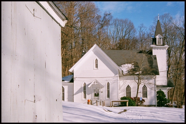 After that it was all plain sailing. I set the camera in aperture priority mode and went out to take some pictures along nearby Peekskill Hollow Road. There were a few operator-related (i.e. me) errors e.g. not noticing that the camera was selecting too low a shutter speed for me to hand hold, but generally I was pleased with the results. Above the former Tompkins Corners Baptist Church (Now the Tompkins Corners Cultural Center).