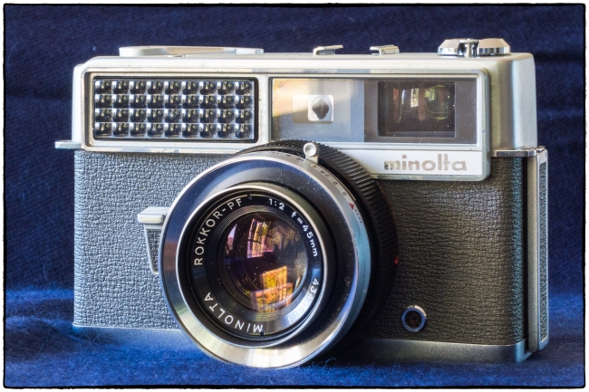 When I started collecting cameras I insisted on getting cameras that worked. After getting a number of them, however, I resigned myself to using only a few. So I don’t really expect to use this camera much – if at all. So why did I get it? I got it because it fits a couple of niches in my camera collection: 1) It’s a rangefinder camera, which I what I originally started collecting; 2) My original camera was a Minolta Hi-matic 7sii and I’ve always had an idea that I might collect all of the cameras in the series and this is the original Minolta Hi-matic, or as the re-badged US version was called: the Ansco Autoset; 3) The Ansco Autoset has an interesting story behind it – it may well have been the first camera in space: