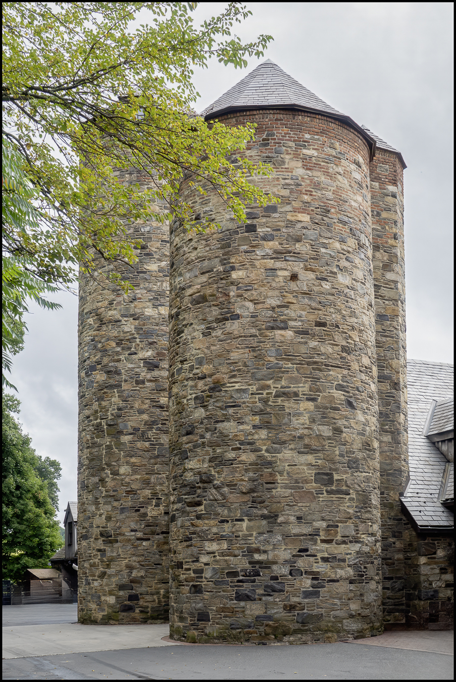 one of the buildings in the Barlow Block. The parish later held meetings for a time in the original First Presbyterian Church, a structure that was once located on the same site where Trinity Episcopal Church now sits. After the First Presbyterian Church moved to its present location at 34 South Highland Avenue (see entry), the Parish purchased the site and built the current structure on the property. The three story stone tower that dominates the Church’s main façade was constructed in accordance with a mandate from the Episcopal Church stating that all churches must incorporate a large tower into their design as a visual symbol of this denomination. A number of the stained glass windows in the building were obtained from Tiffany Glass and Decorating Company of New York City and from Gorham Manufacturing of Providence, Rhode