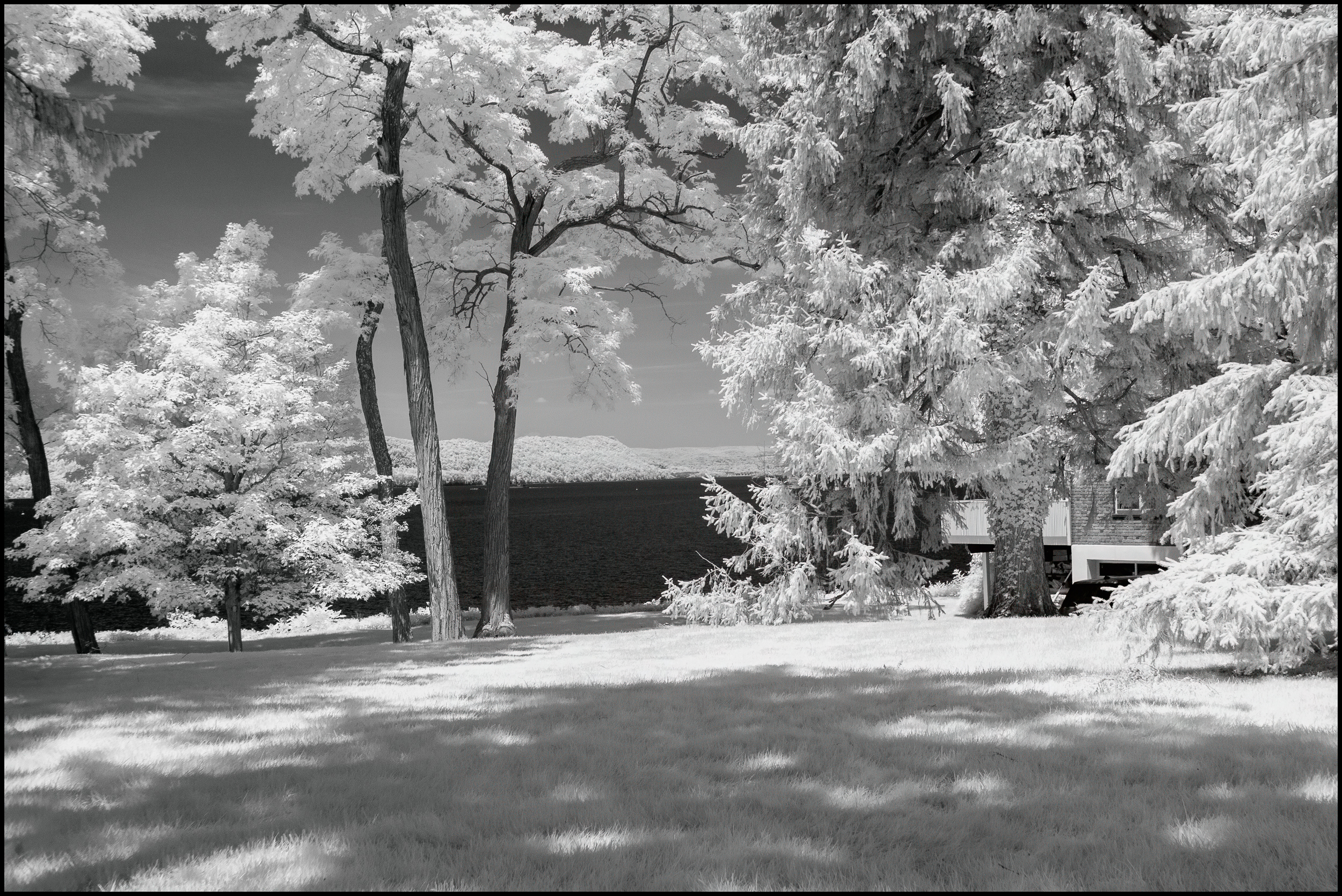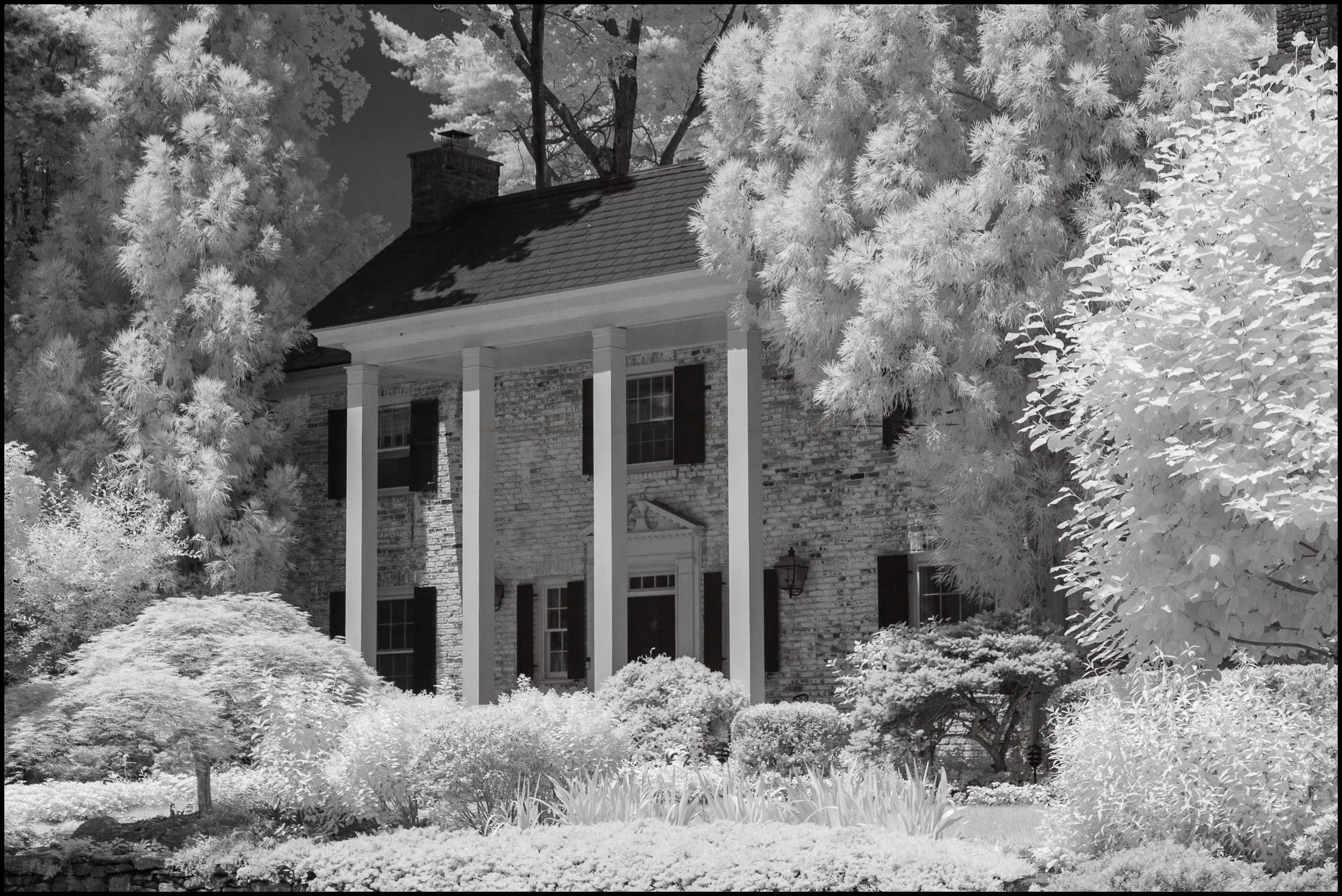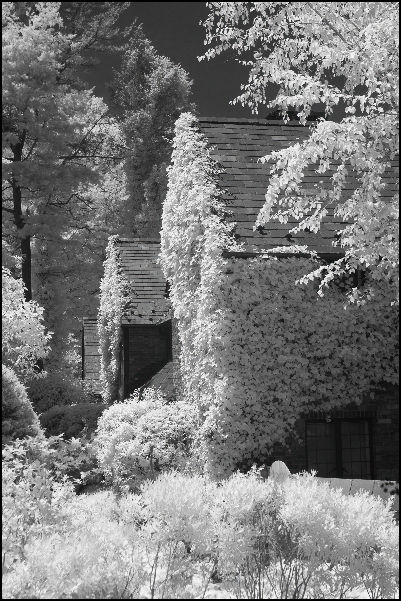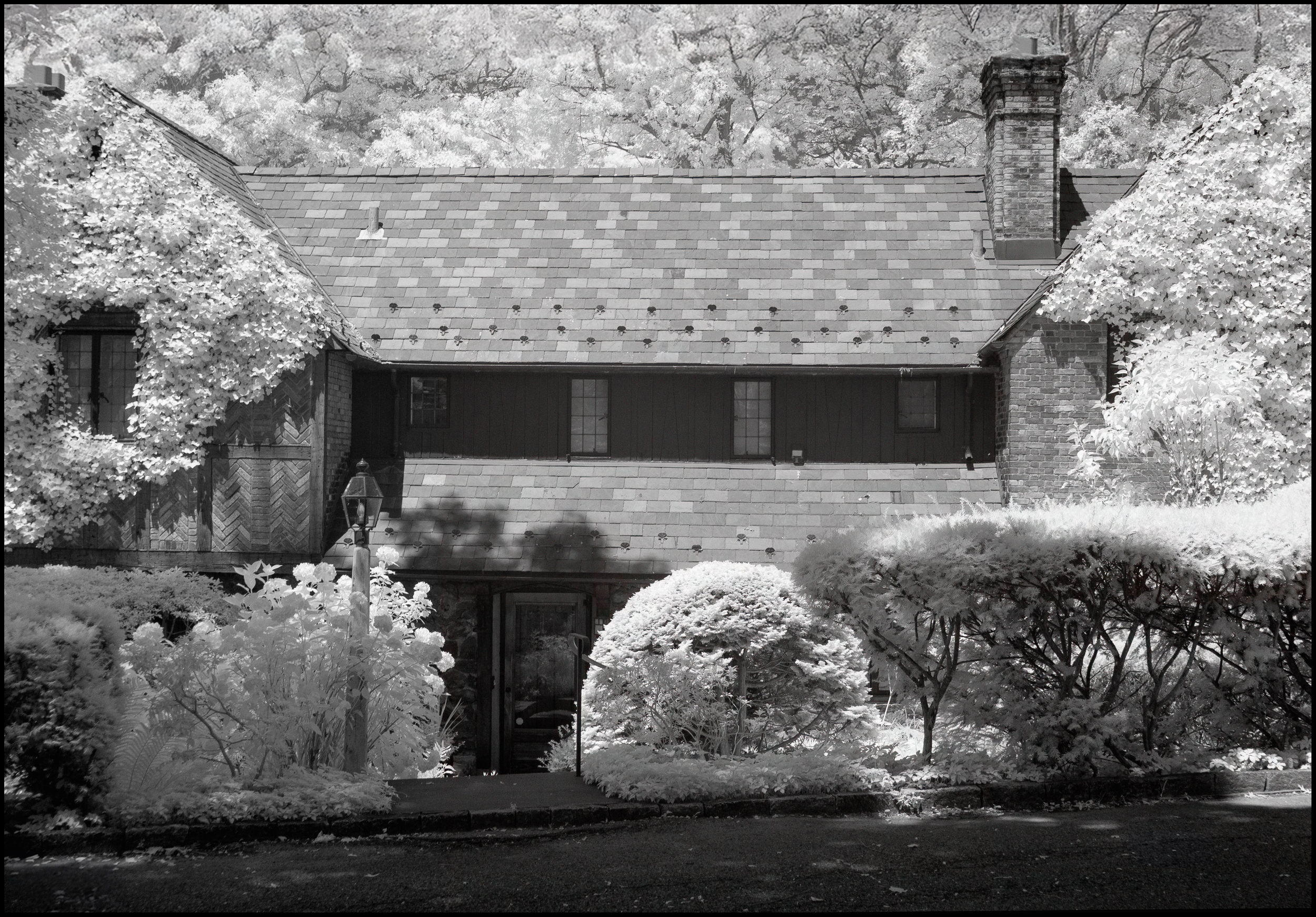 While there it occurred to me that Rockwood Hall might make a good subject for some infrared photography. I knew that the foliage and the grass would turn bright white and the foundations (all that remains of Rockwood Hall) would become dark. So, I returned with my primary infrared camera month or so later.