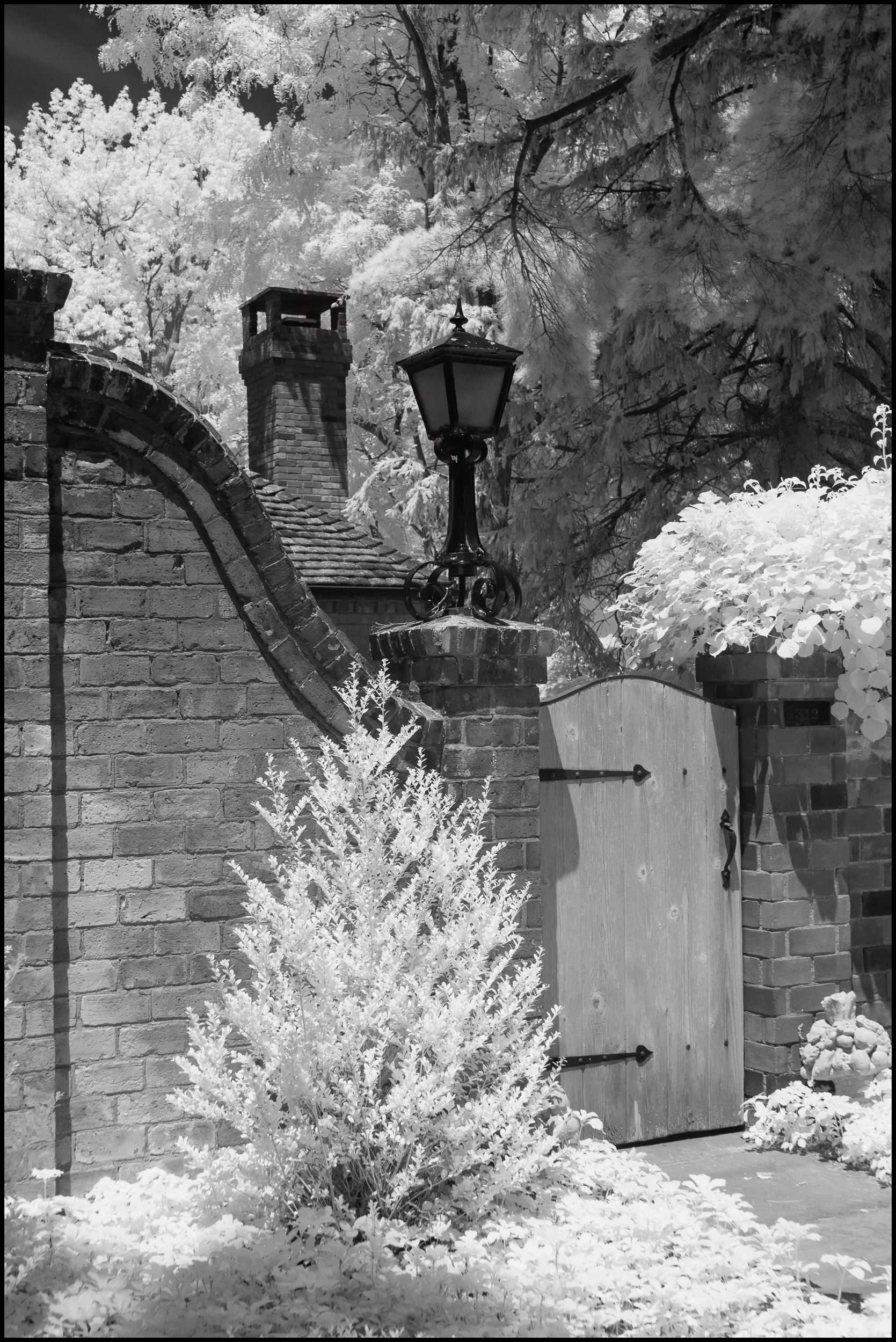 Continuing with my explorations of infrared photography. As I was nearing Sleepy Hollow after my walk around the Rockefeller State Park Preserve, I walked by a number of houses many of them with flowers growing in their gardens. So, I thought I should try what effect false infrared photography had on flowers.