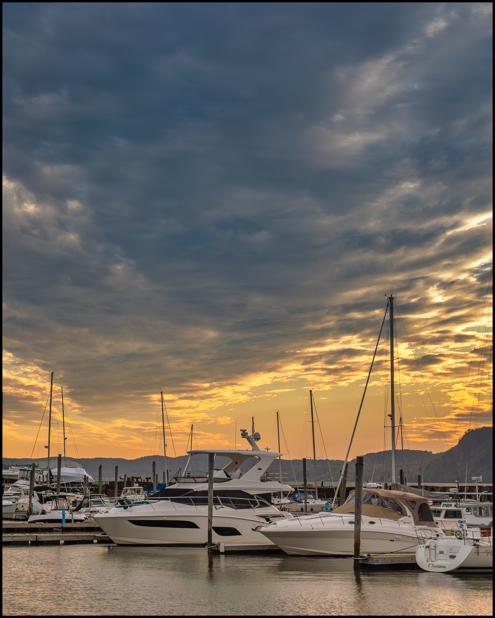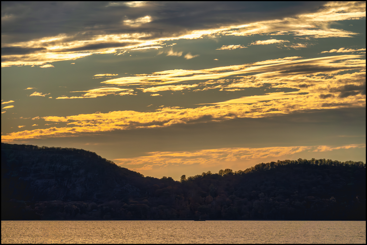 I mentioned in an earlier post that I had gone down to the Hudson in the afternoon for an early dinner. There were lots of clouds about so I decided to stick around for a while to see what the sunset would bring. These are the results. Not the multicolored hues that you usually see with really spectacular sunsets. But not all that bad either.