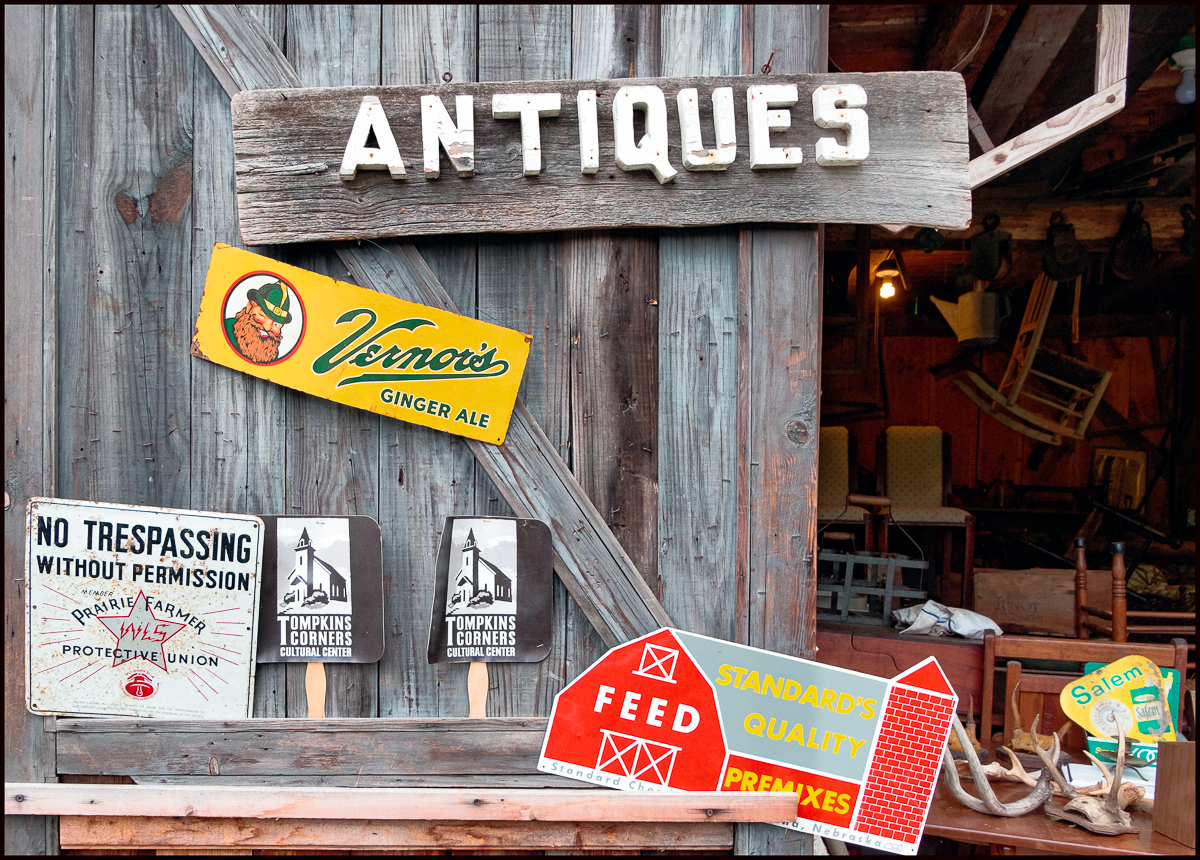 I came across these old, fading, worn signs at a bar on the Hudson River.