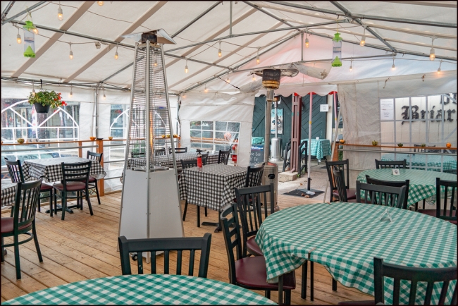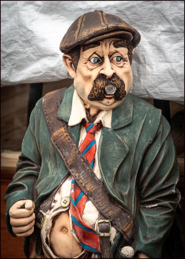 We asked if we could relocate to another table and were told that the only available tables were outside. I didn’t even know that they had an outside seating area! Anyway off we went. It turned out that it was quite pleasant, and almost completely empty – just one couple and a couple of these colorful statues.