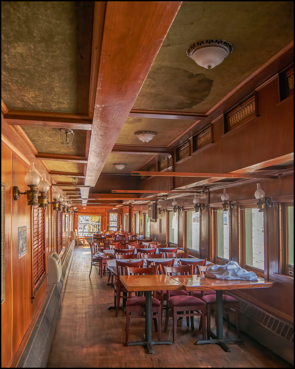 William H. Vanderbilt. The car was first assigned to Daniel W Caldwell and later W. H. Newman, both presidents of the Lake Shore & Michigan Southern Railroad, predecessor of the NY Central west of Buffalo. Still later, the car became the official car of the president of the NY Central itself. The mahogany paneling, stained-glass transom, and lamps represent the luxurious appointments and ornamentation commonplace back then. It is interesting to note that for several generations the ultimate hallmark of wealth, importance, and social achievement was private railroad cars. As Lake Shore & Michigan Southern Private Car 44, the car had two staterooms, a large kitchen, a dining room in the center of the car, and observation rooms with open platforms on both ends. In 1914 it was rebuilt adding a vestibule on one end, a third stateroom, and a porter’s room, and the car was re-lettered New York Central 44. In October 1924, the car was rebuilt again at West Albany. The interior was rearranged and a shower was added. In May 1928, the car was renumbered NYC 17, which remained until December 1940, when the car was converted to a diner for wreck train service and renumbered once more to X-928. In later years it was based in Jackson, Michigan. Finally, the car was retired and sold in March 1970 to Private Varnish Inc., a group of former New York Central employees who arranged for it to be moved to Harmon, NY. It was then purchased in January 1973 by Mr. Scazzero and moved to Valhalla for restoration.