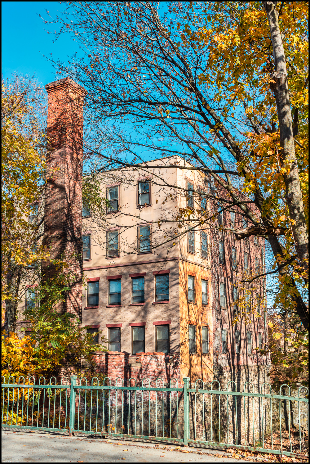 The Innis Dye Works building, dating to the 1830s, abuts the creek several hundred feet from its confluence with the Hudson River. The creek was an important source of industrial water power in the early 19th century, such as grinding materials to make dyes.[4]